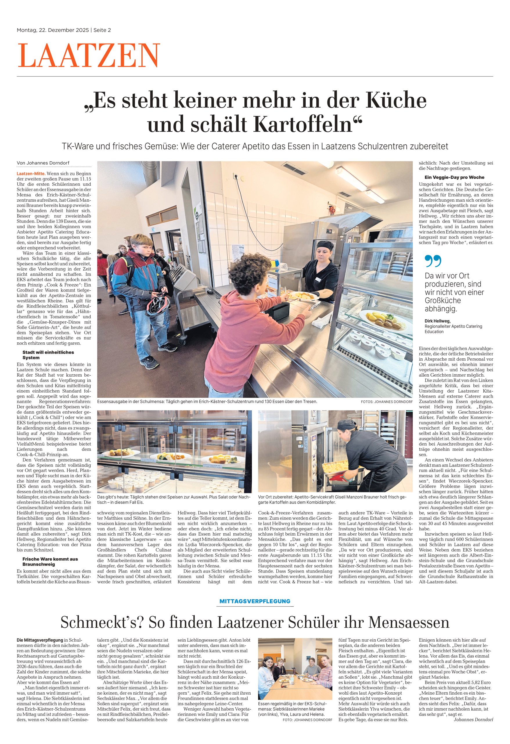 „Es steht keiner mehr in der Kücheund schält Kartoffeln.“ Im Bericht erfahren Sie wie wir die tägliche Verpflegung am Erich-Kästner-Schulzentrum meistern. Wir produzieren vor Ort und sind daher nicht von einer Großküche abhängig.